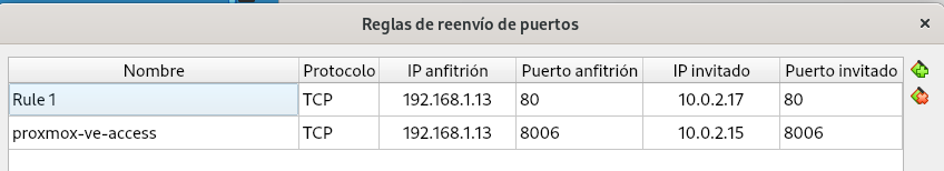 <figure><img src="https://2817582392-files.gitbook.io/~/files/v0/b/gitbook-x-prod.appspot.com/o/spaces%2FvGN1WZpuVtUpSb3xgLvp%2Fuploads%2FvoyNH6kJEsdsPSouh2BX%2Fimage.png?alt=media&#x26;token=0385514a-7d44-4200-ba8f-19d18bedc7bd" alt=""><figcaption><p>Reenvío de puertos en red NAT</p></figcaption></figure>