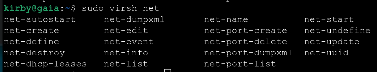 sudo virsh net-list --all